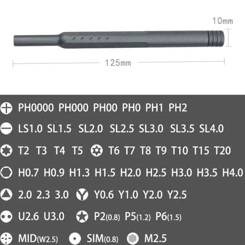• Incluye 48 cabezas magnéticas con especificaciones Phillips, Torx, Flathead, HEX, U Tipo, estrella, Y, triángulo, medio, SIM y socket hexagonal; mango con cola giratoria y diseño magnético para evitar dispersión de Piezas