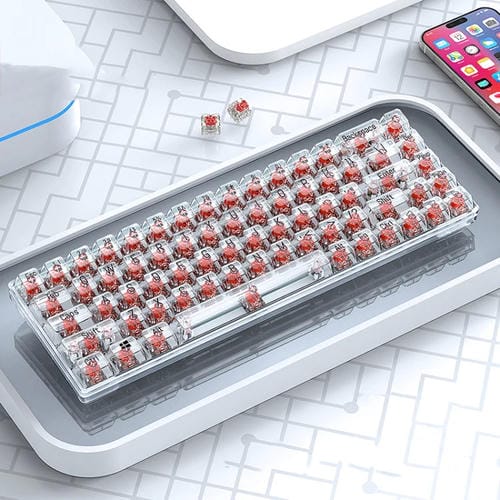 Teclado Mecánico T-Wolf T40 Transparente para Juegos y Oficina con Luz Mixta RGB de 68 Teclas (Rojo)