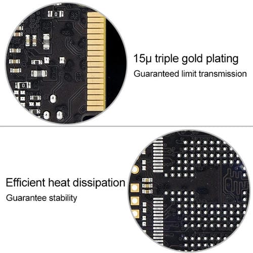 - Capacidad de 64 GB, diseño de PCB multicapa para funcionamiento a alta velocidad sin interferencias, disipación eficiente de calor, triple chapado en oro para transmisión estable, sistema de Alimentación independiente