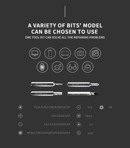 Es adecuado para dispositivos electrónicos, electrodomésticos, Relojes, gafas y otros objetos que requieran destornilladores de precisión. -