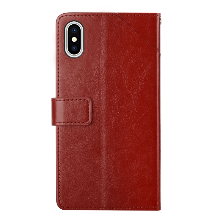 Funda para iPhone Xs Max Y Costura Tapa Horizontal con Soporte Ranuras Tarjetas Cartera Marco Foto (Brown)