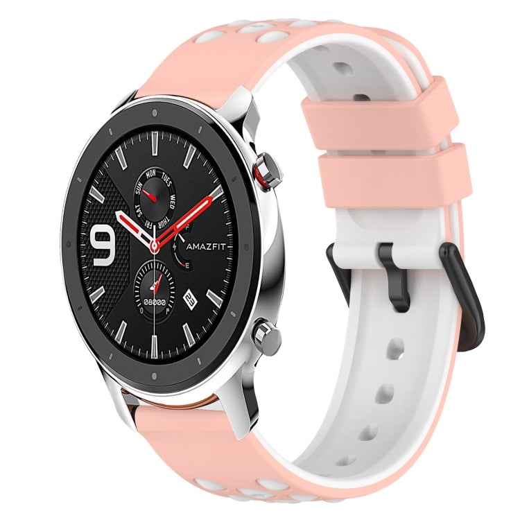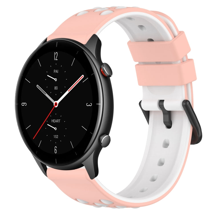 Correa de Reloj 22mm Amazfit GTR 2E Silicona Porosa Dos Colores (Rosa + Blanco)