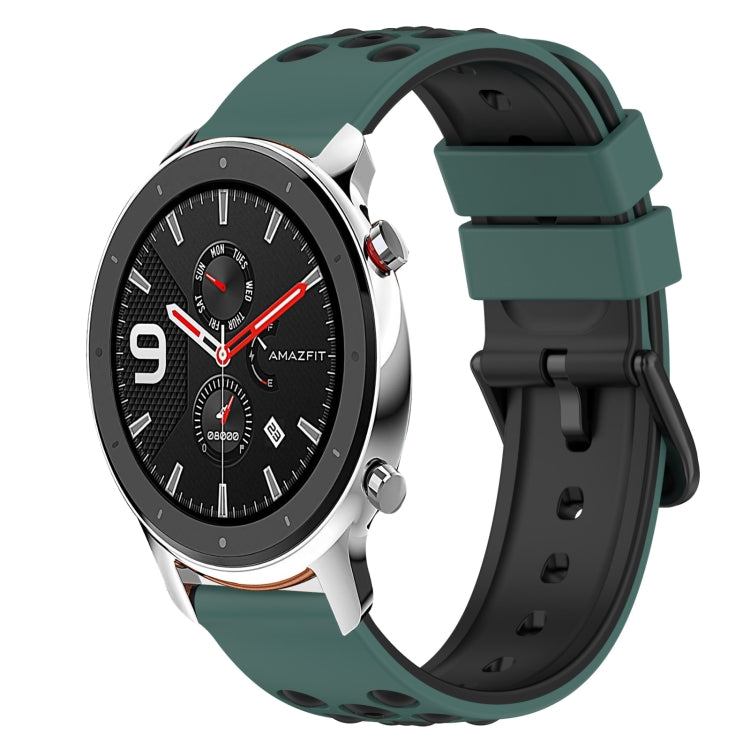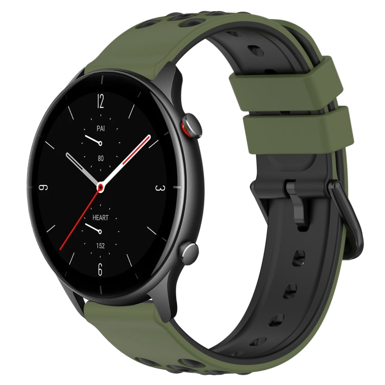 Correa de Silicona Porosa para Amazfit GTR 2E 22mm (Verde Militar + Negro)
