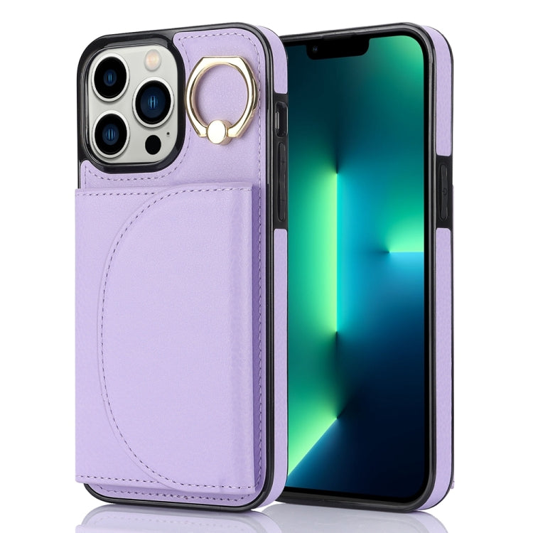 For iPhone 13 Pro YM006 Leather Feel Card Holder Ring Holder Phone Case (Purple)