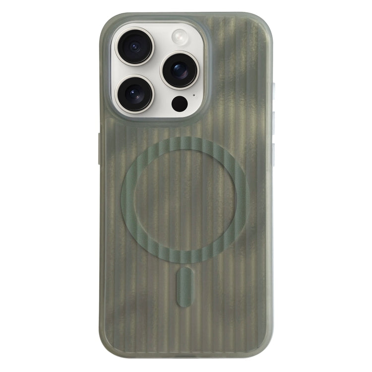 Funda para Teléfono iPhone 14 Pro Max Magsafe Sensación de Piel a Rayas (Verde)