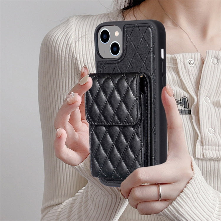 Funda para iPhone 15 Plus BF25 Square Plaid Card Bag Holder Phone Case (Púrpura)