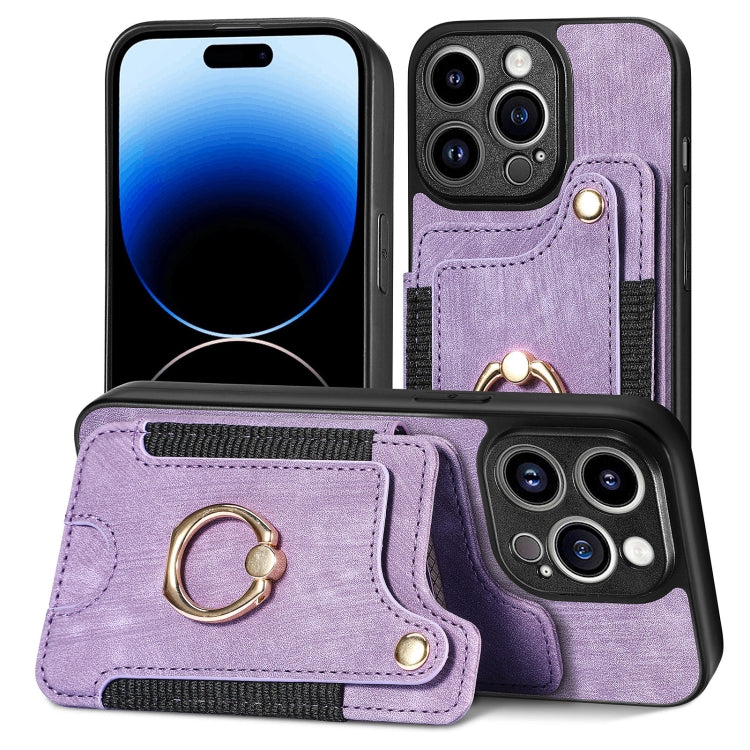 Funda para iPhone 11 Pro Max Retro Skin-Feel Ring Multi-Card Wallet (Púrpura)
