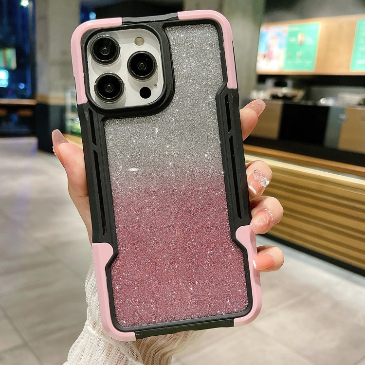 Funda para iPhone 11 Armor Acrylic 3 en 1 Gradient Glitter Powder Phone Case (Rosa)