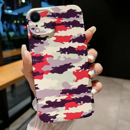 Funda para iPhone Xr PC Precise Hole Camouflage Pattern (Rojo Púrpura Blanco)