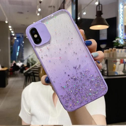 Funda para iPhone Xs X Starry Gradient Glitter Powder TPU Phone Case (Púrpura)