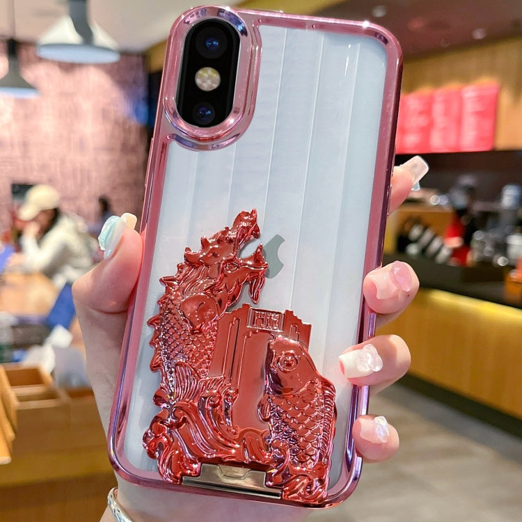 Funda TPU Galvanizada iPhone X/Xs Diseño Dragón Saltando en la Puerta (Rojo)