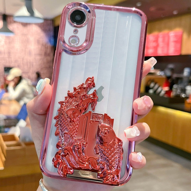 Funda TPU Galvanizada iPhone Xr Diseño Dragón Saltando en la Puerta (Rojo)