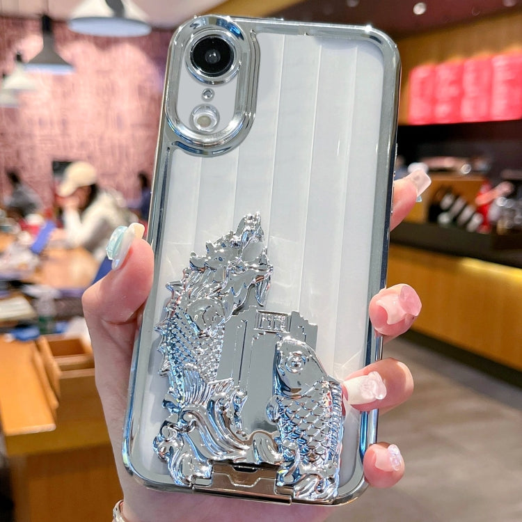 Funda de TPU Galvanizada para iPhone Xr con Diseño de Dragón Saltando (Plateada)