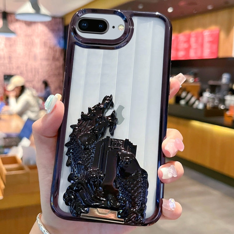 Funda de TPU Galvanizada para iPhone 7 Plus/8 Plus Diseño Dragón Saltando (Marrón)