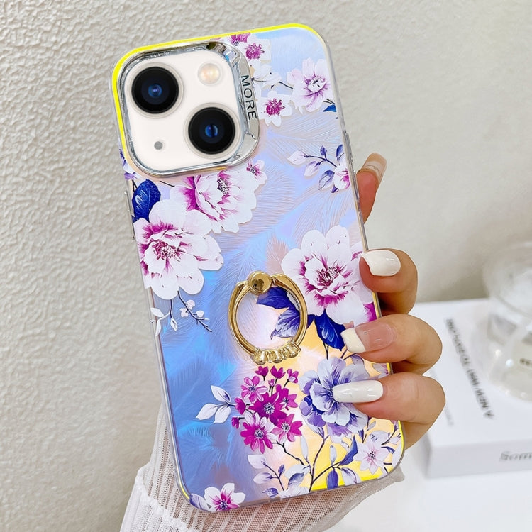 For iPhone 13 Electroplating Laser Flower Ring Holder TPU Phone Case (Myosotis AH2)
