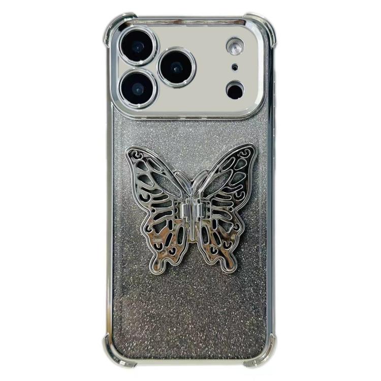 Funda de TPU con diseño de mariposa 3D electropolada para iPhone 17 Pro (plateada)