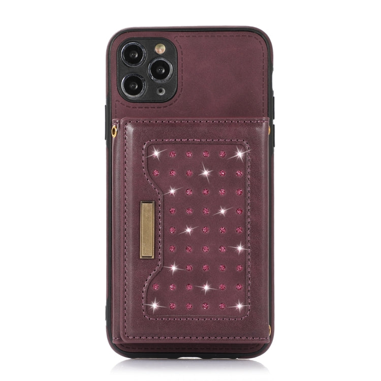 Funda para iPhone 11 Pro Max Crossbody 3D Cuero con Tapa en Relieve (Rojo Vino)