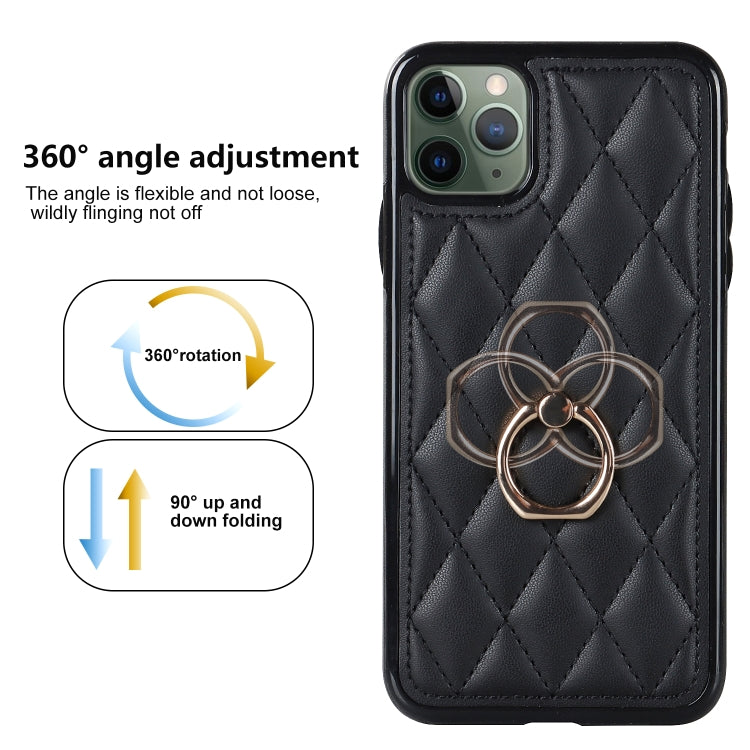 Funda para teléfono iPhone 11 Pro Rhombic PU Cuero con soporte para anillo (Negro)