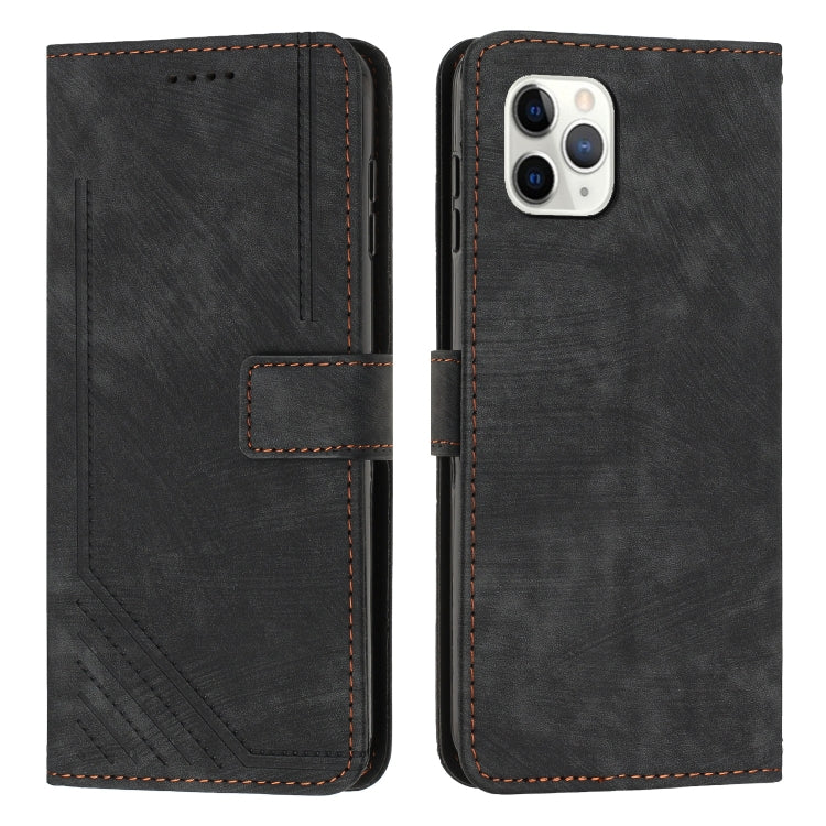Funda para Teléfono iPhone 11 Pro Skin Feel Stripe Pattern Cuero con Cordón (Negro)
