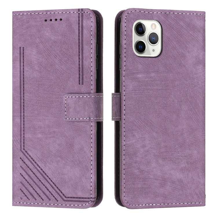 Funda para iPhone 11 Pro Skin Feel Stripe Pattern de Cuero con Cordón (Púrpura)