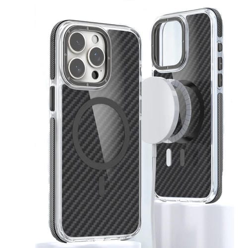 Funda para Teléfono iPhone 12 Pro Max Magsafe Fibra de Carbono Dos Colores (Negro)