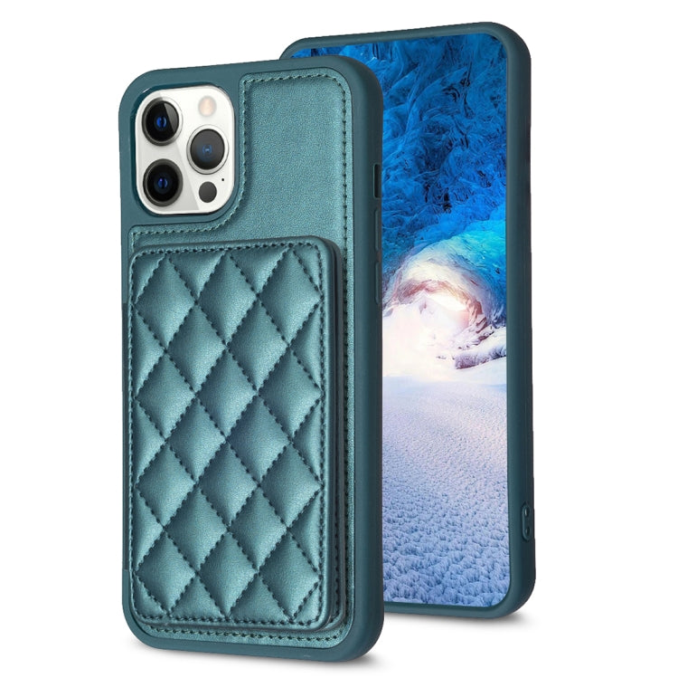 For iPhone 12 Pro Max BF25 Square Plaid Card Bag Holder Phone Case(Green)