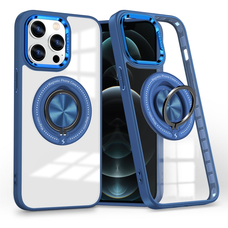 Magnetic Rotating Ring Holder Phone Case for iPhone 12 Pro Max (Dark Blue)