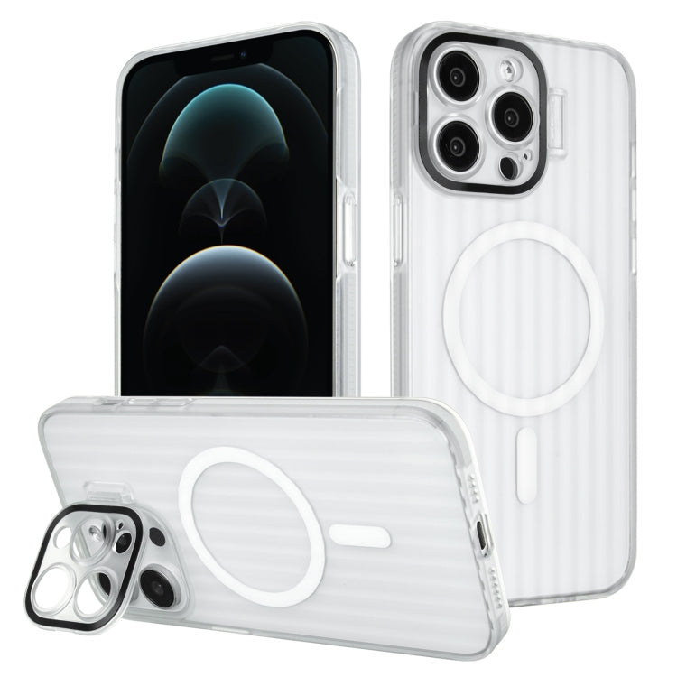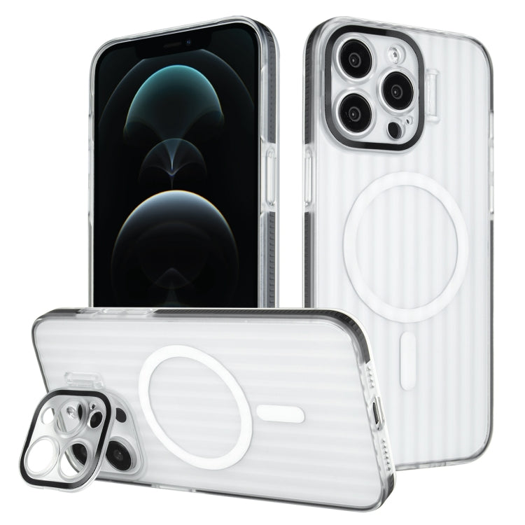 For iPhone 12 Pro Max Color Edge Lens Holder MagSafe Magnetic Phone Case (White)