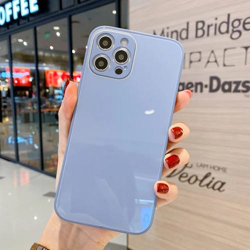 Funda de Teléfono Vidrio Templado para iPhone 13 Pro Max Color Sólido (Azul Claro)