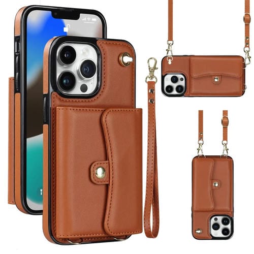 Estuche para Teléfono iPhone 13 Pro Max Ranura Tarjeta Rfid Cordón Largo (Negro)