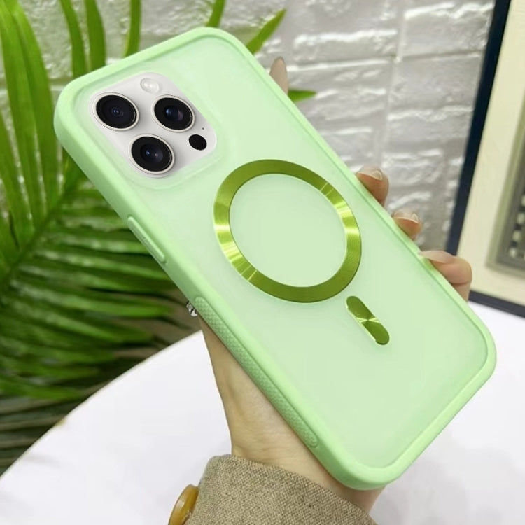Funda híbrida de silicona acrílica Magsafe 3 en 1 para iPhone 16 Pro (Verde Claro)