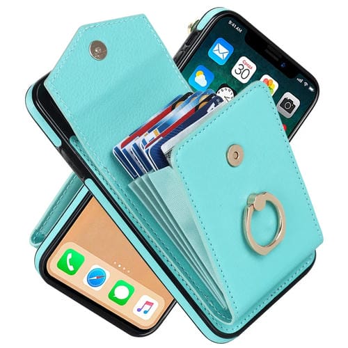 Funda para iPhone Xr Ring Holder con Ranura Rfid para Tarjeta (Verde Menta)