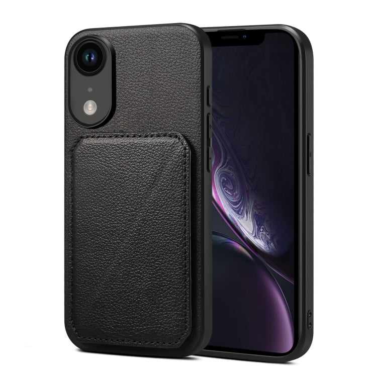Funda Trasera para iPhone Xr de Piel de Becerro de Imitación con Soporte (Negro)