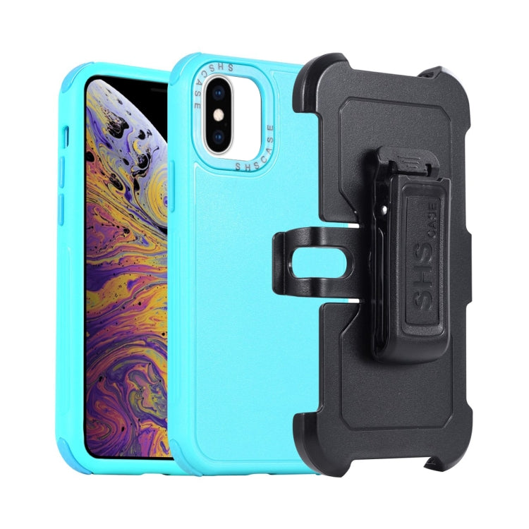 Funda para iPhone Xs Max 3 en 1 PC + TPU con Funda Deslizante (Azul + Azul Cielo)