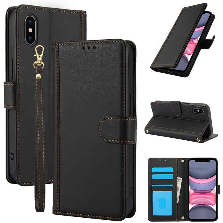 Funda de Cuero para iPhone X/Xs con Ranuras para Tarjetas y Cordón Doble (Negro)