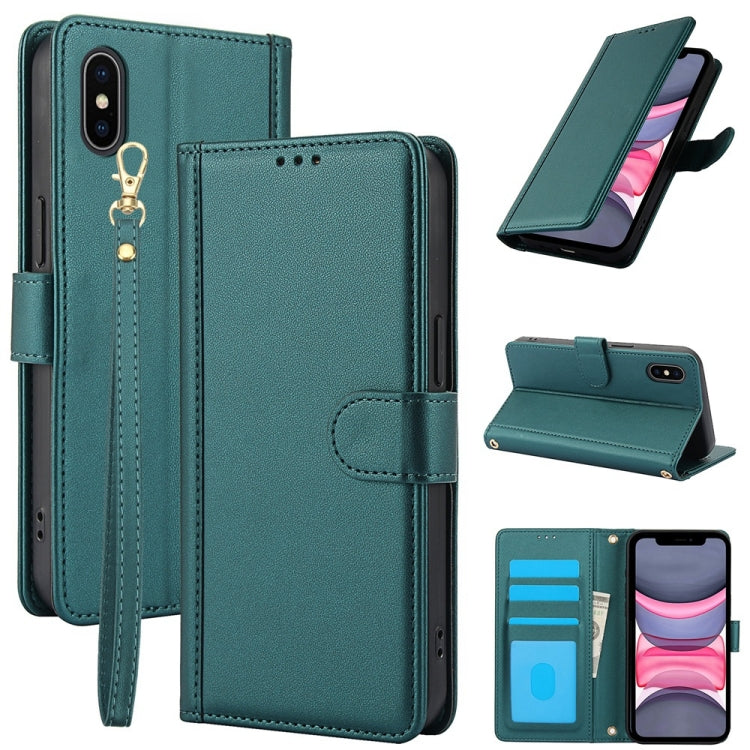 Funda de Cuero para iPhone Xs Max con Ranuras para Tarjetas y Cordón Doble (Verde)