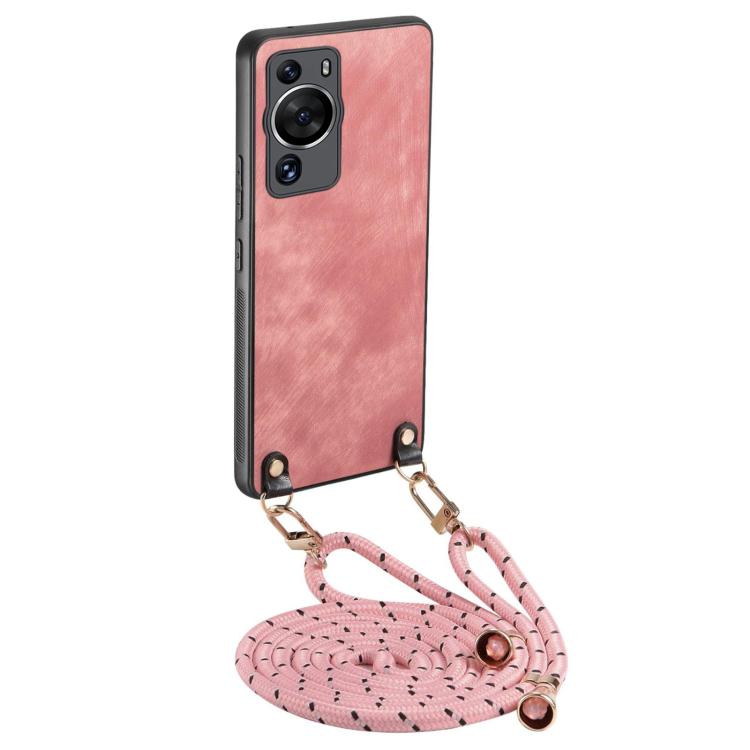 Funda de Cuero Vintage para Huawei P60 Pro con Correa Cruzada para PC (Rosa)