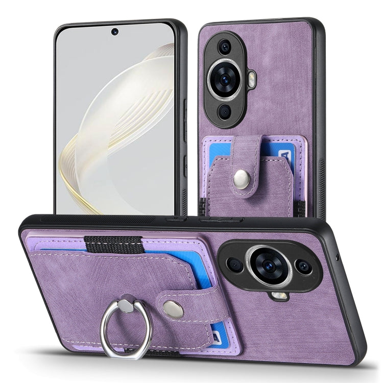 Funda para Huawei Nova 11 con Billetera, Tarjeta y Anillo, Piel Retro (Púrpura)