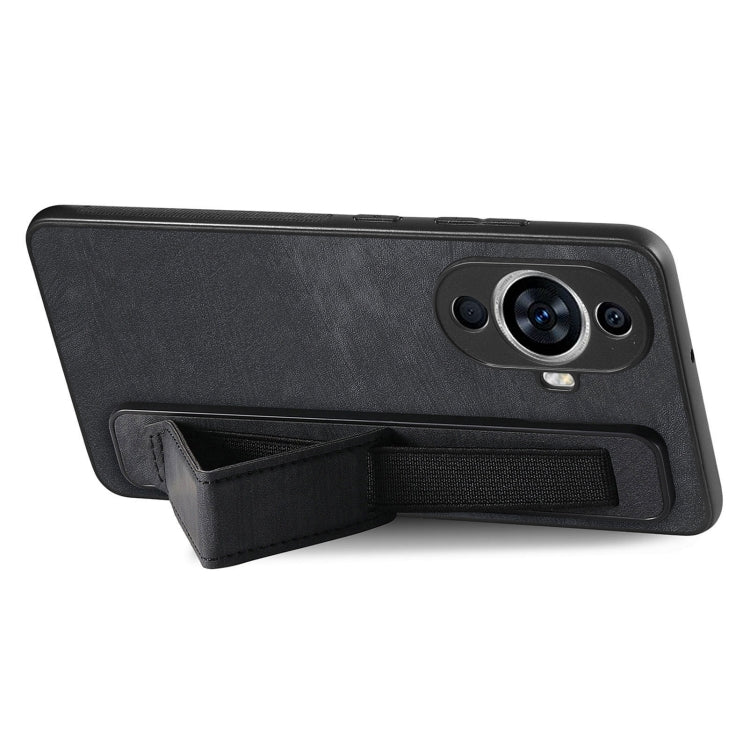 Funda Trasera de Cuero para Huawei Nova 11 con Soporte para Pulsera (Negro)