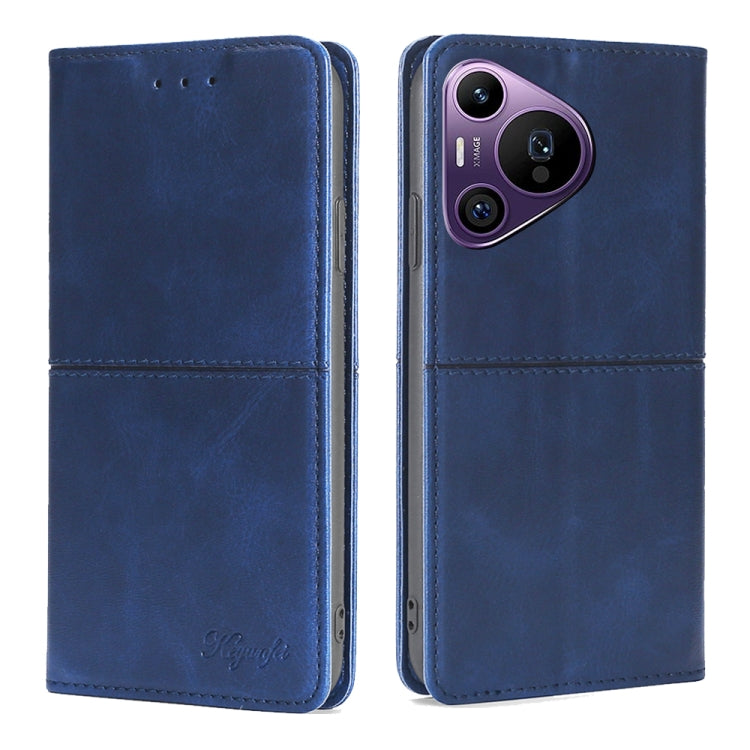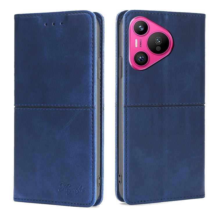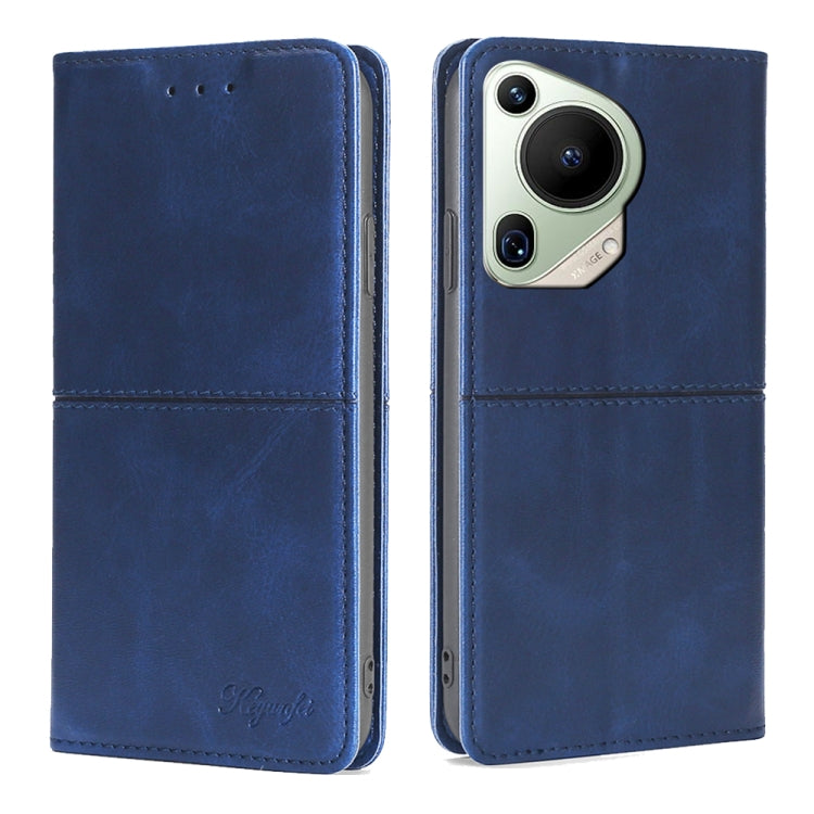 Funda de Cuero Magnético para Huawei Pura 70 Ultra 5G con Textura de Vaca (Azul)