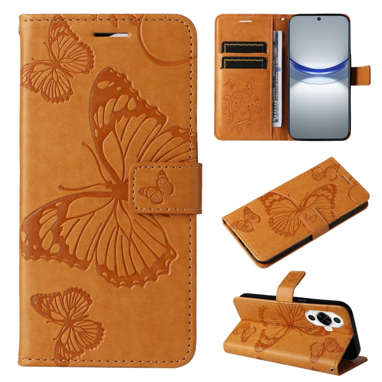 Funda de Cuero con Tapa y Mariposa en Relieve 3D para Huawei Nova 12S (Amarillo)