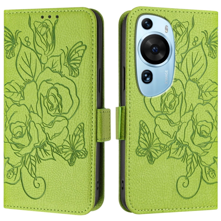 Funda de Cuero Antirrobo para Huawei P60 Art Embossed Rose con Rfid (Verde)