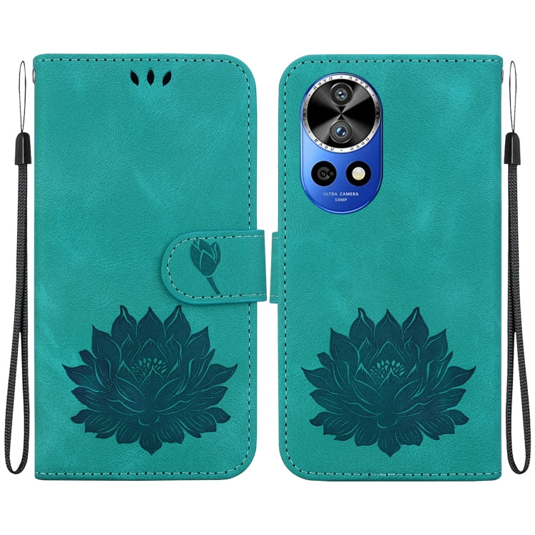 Funda de Cuero para Huawei Nova 12 Pro y Nova 12 Ultra con Relieve de Loto (Verde)