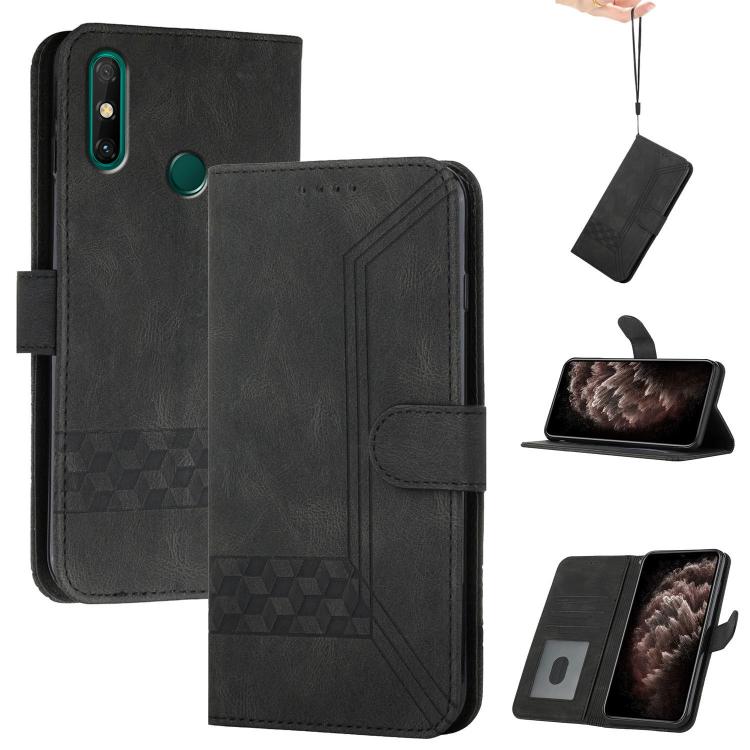 Funda de Cuero con Tapa y Tacto de Piel Cúbica para Huawei Enjoy 20E (Negra)