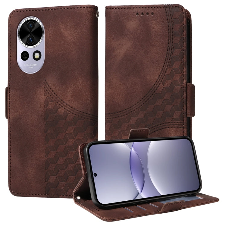 Funda de Cuero con Rombos en Relieve y Estrellas para Huawei Nova 13 Pro (Marrón)