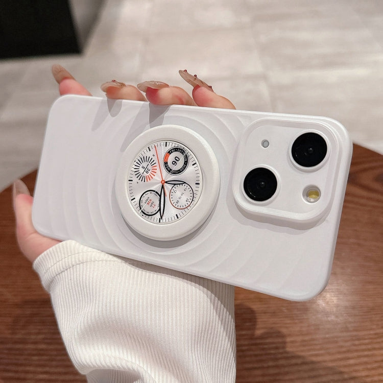For iPhone 14 Wave Texture PC Shockproof Phone Case with Kickstand(White)