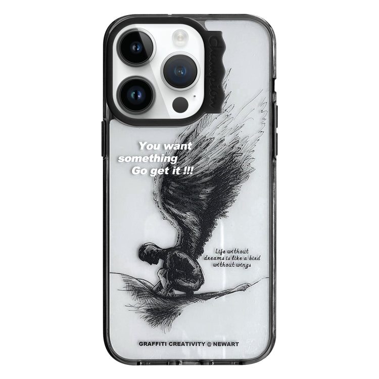 For iPhone 14 Pro Rotation MagSafe Holder Gradient Glitter TPU Phone Case (Black)