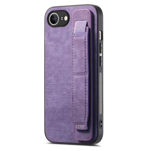 Funda de Cuero para iPhone 16E con Parte Trasera y Soporte para Pulsera (Morado)