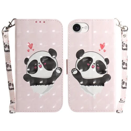 Funda de Cuero con Tapa Horizontal para iPhone 16E (Panda con Forma de Corazón)