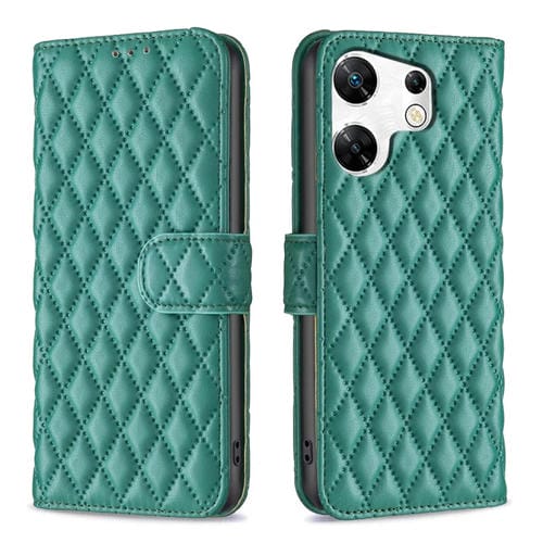 Funda de Cuero con Tapa para Infinix Hot 30 Play NFC Diamond Lattice (Verde)